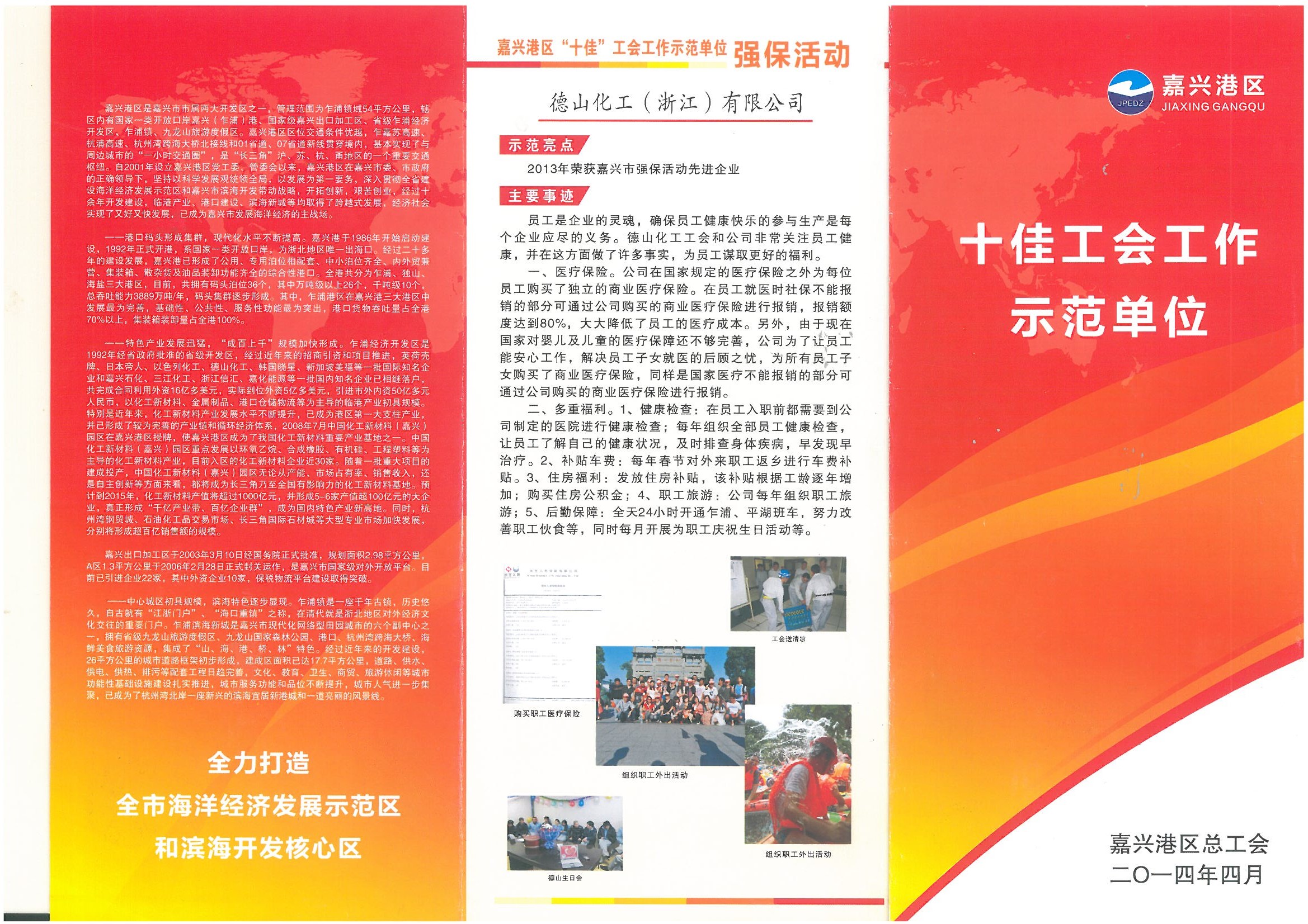 我工會(huì )榮獲嘉興港區十佳工會(huì )工作示范單位稱(chēng)號 2014/4/28